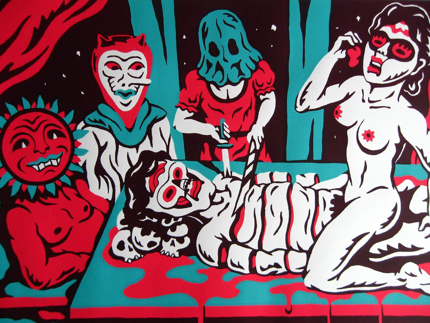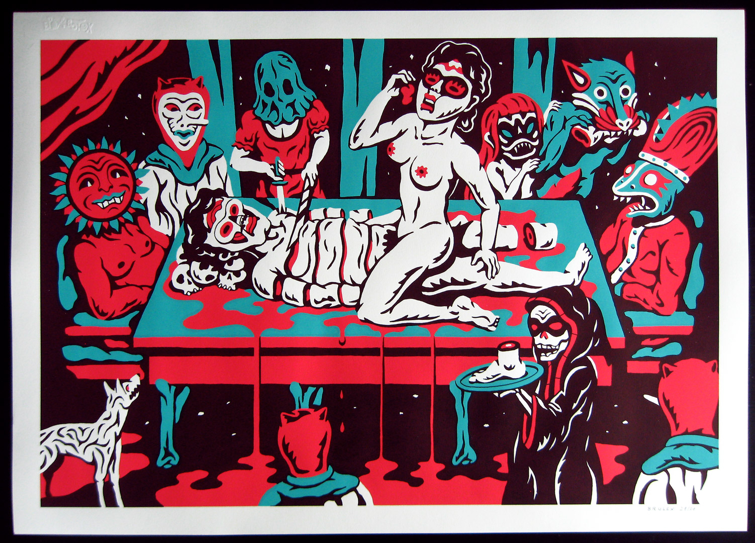 Bloody Last Supper 2.0, religious and literal depiction of orgy, where the consumer in his glut, becomes the consumed.