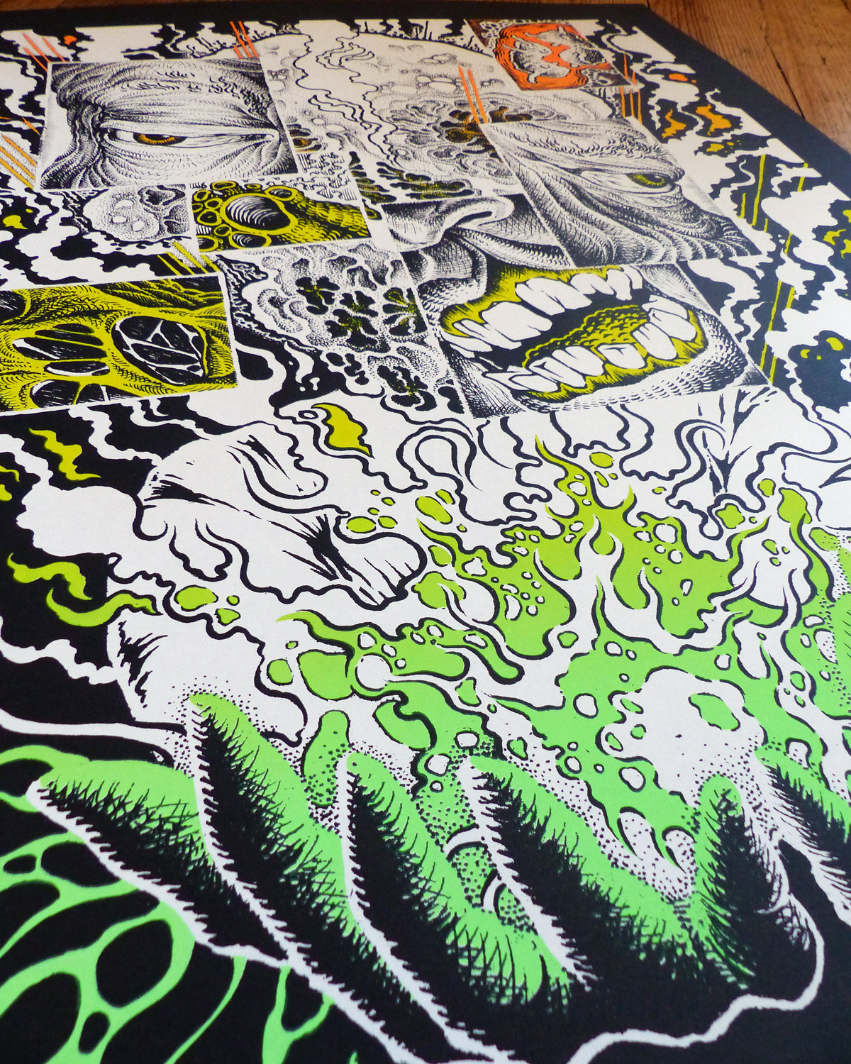 Affiche sérigraphiée blanc + dégradé fluo, 50x70cm,